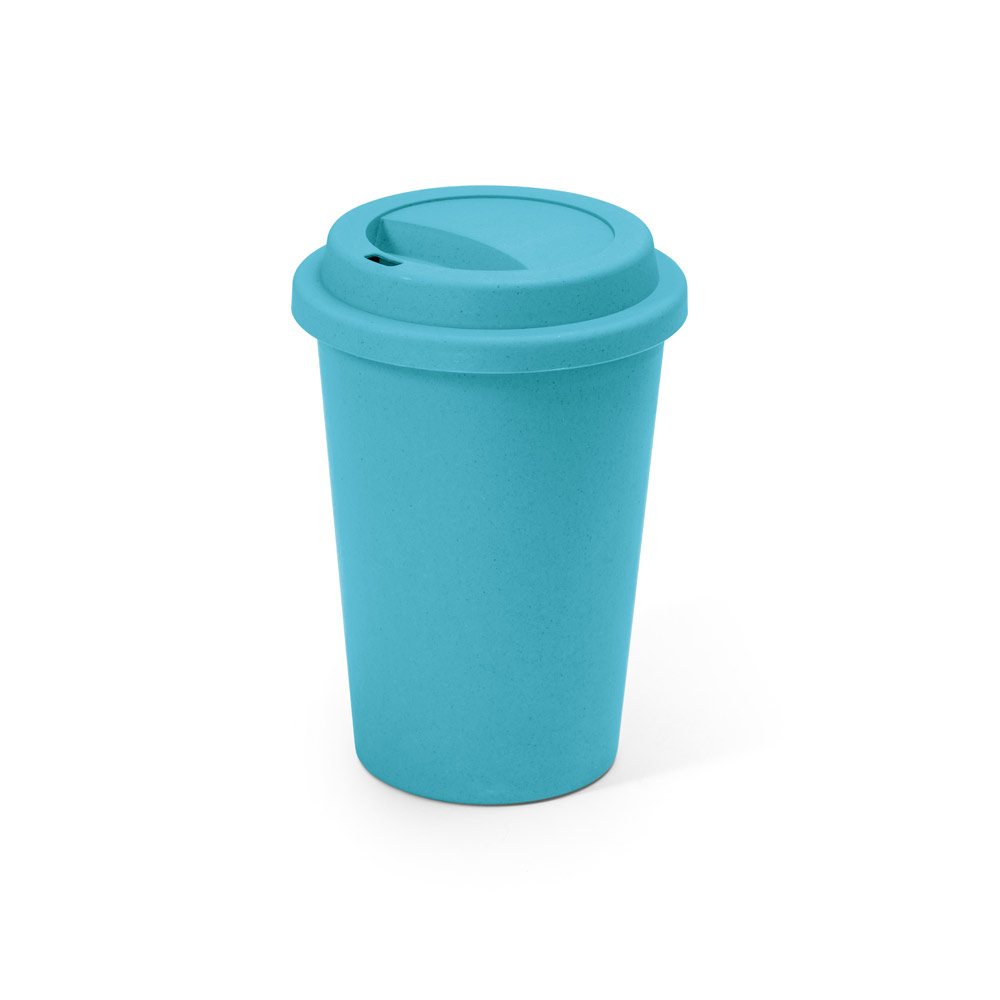 Copo de viagem em fibra de bambu (60%) e PP (40%) com tampa e capacidade até 450 mL. Certificação EU Food Grade. ø93 x 134 mm