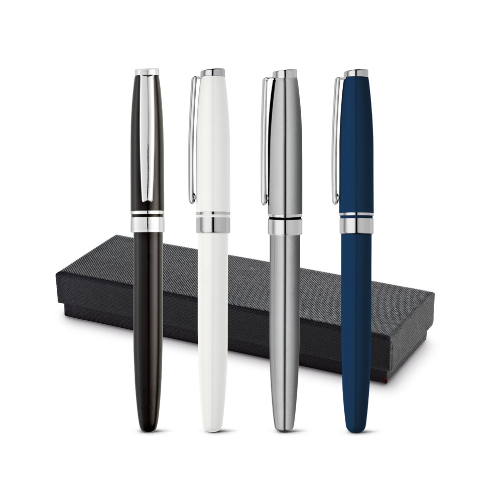 Roller em alumínio com clipe. Escrita em preto. Fornecido em estojo presente almofadado. ø12 x 136 mm | Estojo: 175 x 55 x 25 mm
