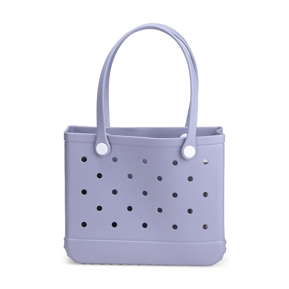 Bolsa em EVA ecológico resistente à água e de fácil limpeza. Conta com furos para ventilação e dispersão de resíduos líquidos ou grãos de areia e terra, além de textura antiderrapante na parte inferior e alças de mão fixadas à bolsa por botões em polipropileno (PP).