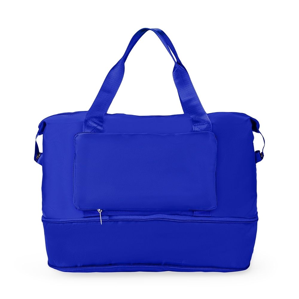 Bolsa expansível em poliéster impermeável com capacidade de até 30 litros, obtida a partir da abertura do compartimento inferior, com fechamento em zíper. Possui um par de alças em nylon, dois compartimentos internos, incluindo bolso com espaço para encaixe em alça de malas. Pode ser dobrada para facilitar o transporte quando não estiver em uso.