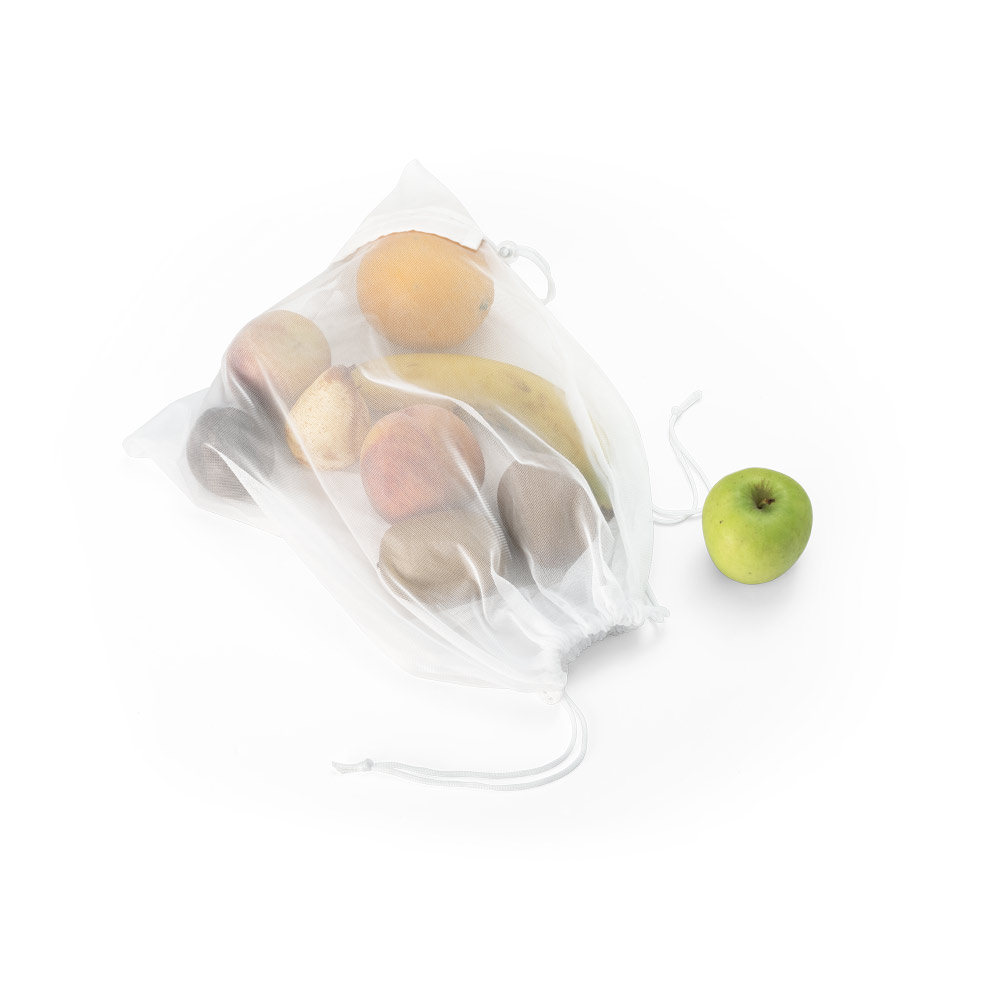 Sacola dobrável 100% rPET, malha 100% poliéster reciclado com bolso em 100% poliéster reciclado 190T para dobrar a sacola, sendo ideal para as compras. Fornecida desdobrada. 320 x 400 mm