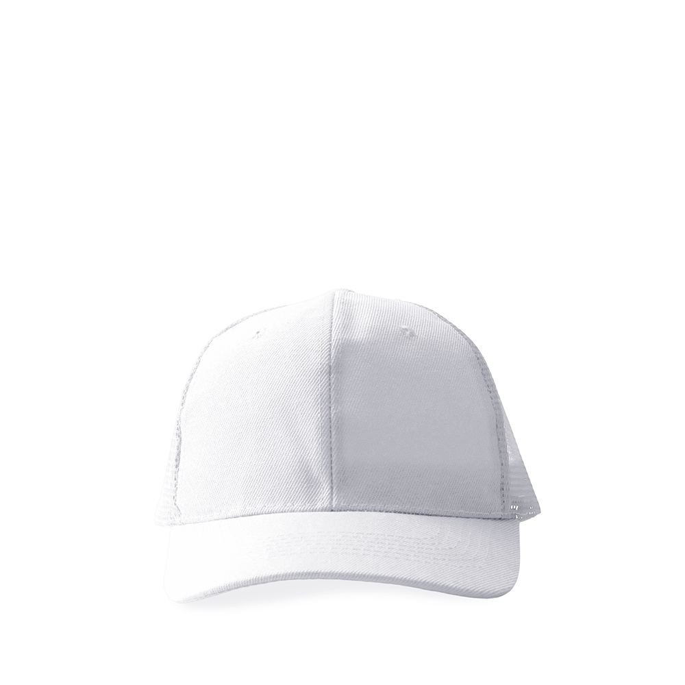 Boné de aba curva confeccionado em poliéster e tela respirável em nylon. Possui fecho plástico de fácil ajuste na parte posterior.