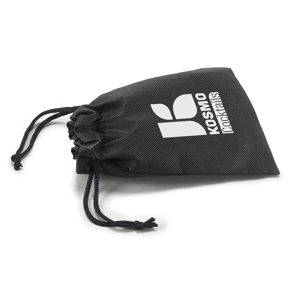 Set de coquetel com 6 peças em aço inox: um shaker (600 + 450 mL), um copo dosador (30 mL), uma colher, um pilão e um coador. Inclusa uma bolsa em non-woven. Fornecido em caixa presente. Certificação EU Food Grade. Caixa: 98 x 98 x 290 mm
