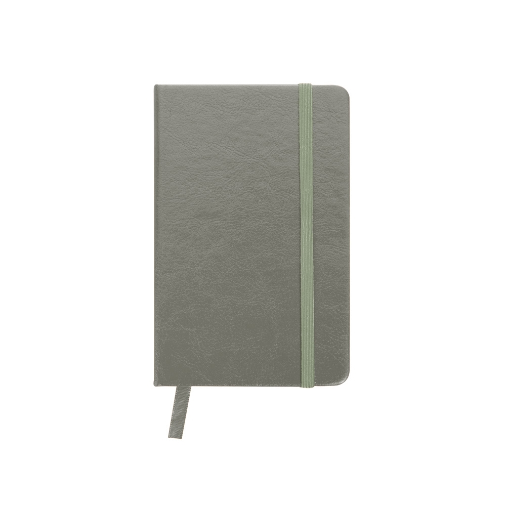 Caderneta de couro sintético com elástico para lacre e marcador de página em cetim, contém 80 folhas pautadas.