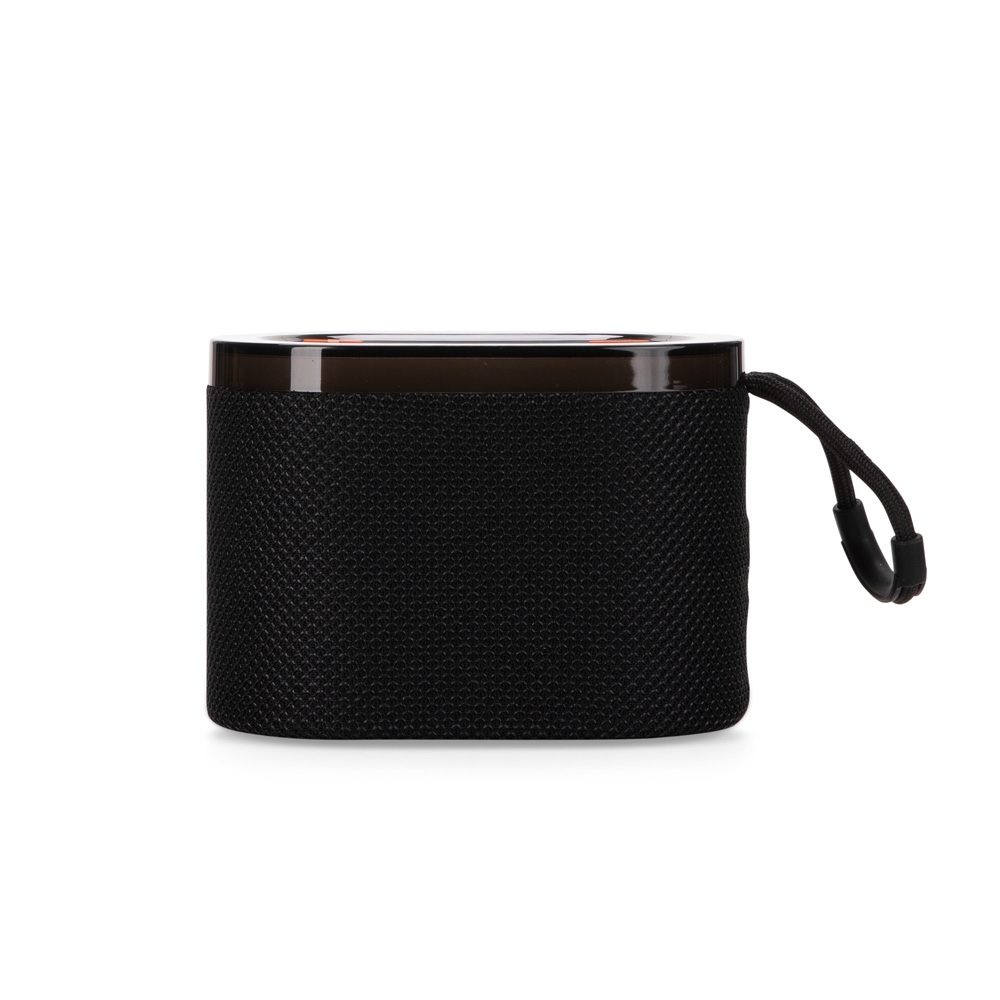 Caixa de som multimídia com estrutura em plástico ABS, revestimento em poliéster, painel de botões em silicone, iluminação RGB ajustável, base com pés antiderrapantes e alça em nylon com protetor em silicone. Possui conexões Bluetooth 5.3, rádio FM e TWS para sincronizar duas caixas de som ao mesmo tempo. Conta com entradas USB-C para recarga do aparelho e auxiliar (P2) para dispositivos compatíveis, além de portas USB-A e TF para reprodução de arquivos MP3 via pen drives e cartões microSD. Aco