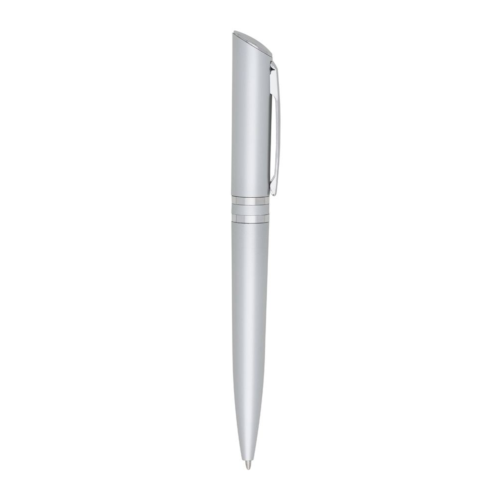 Caneta plástica com carga esferográfica azul e acionamento por rotação. OBS.: PEDIDOS MÍNIMO DE 50 PEÇAS!
