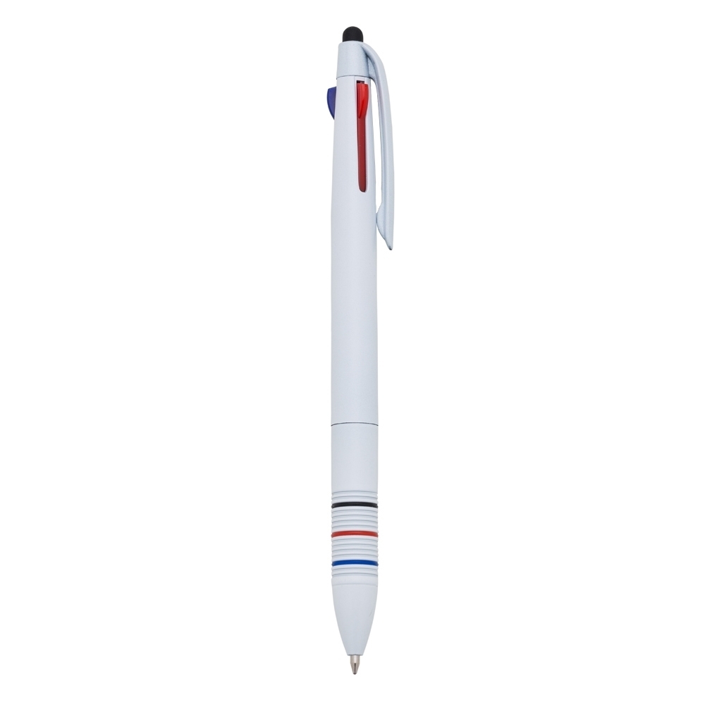 Caneta plástica 3 em 1 com touch screen, cargas esferográficas nas cores: azul, preto e vermelho. OBS.: PEDIDOS MÍNIMO DE 50 PEÇAS!