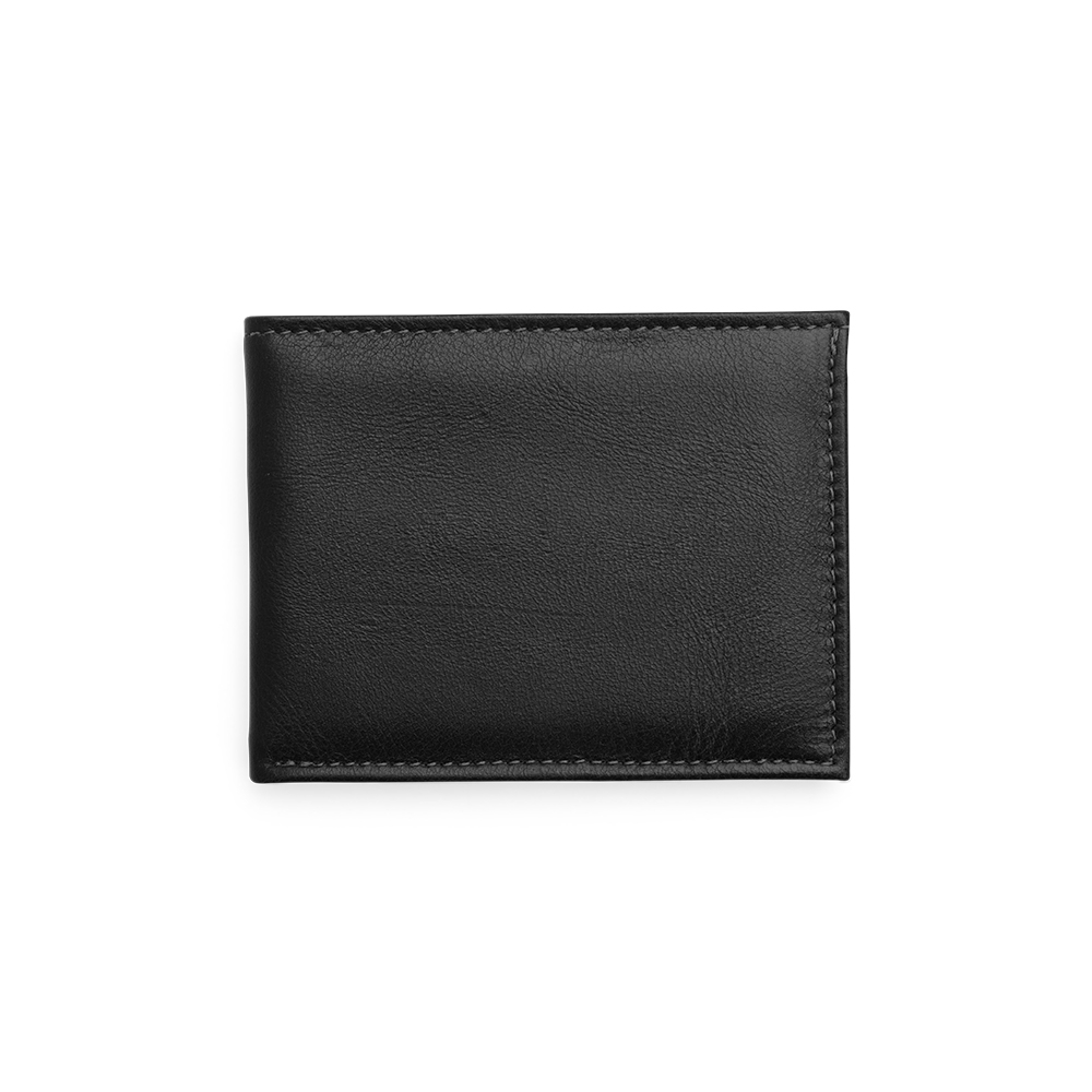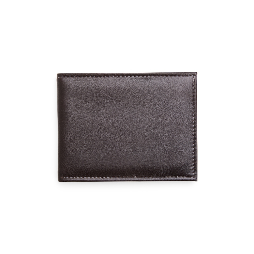 Carteira em couro com design compacto e sem fechamento. Possui seis divisórias internas para cartões e documentos e um compartimento para cédulas.