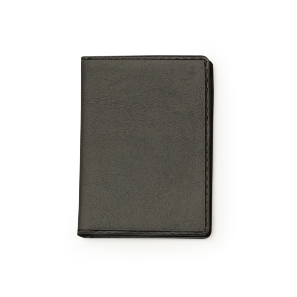 Porta-documento em couro sintético de frente e verso liso, parte interna com bolso plástico e duas divisórias para cartões. OBS.: PEDIDOS APENAS MÚLTIPLOS DE 50 PEÇAS!