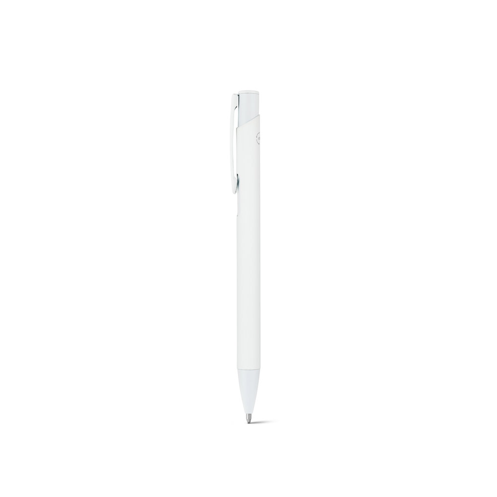 Esferográfica em alumínio 100% reciclado, com acabamento em borracha. Escrita em azul até 1.5 km. ø10 x 136 mm