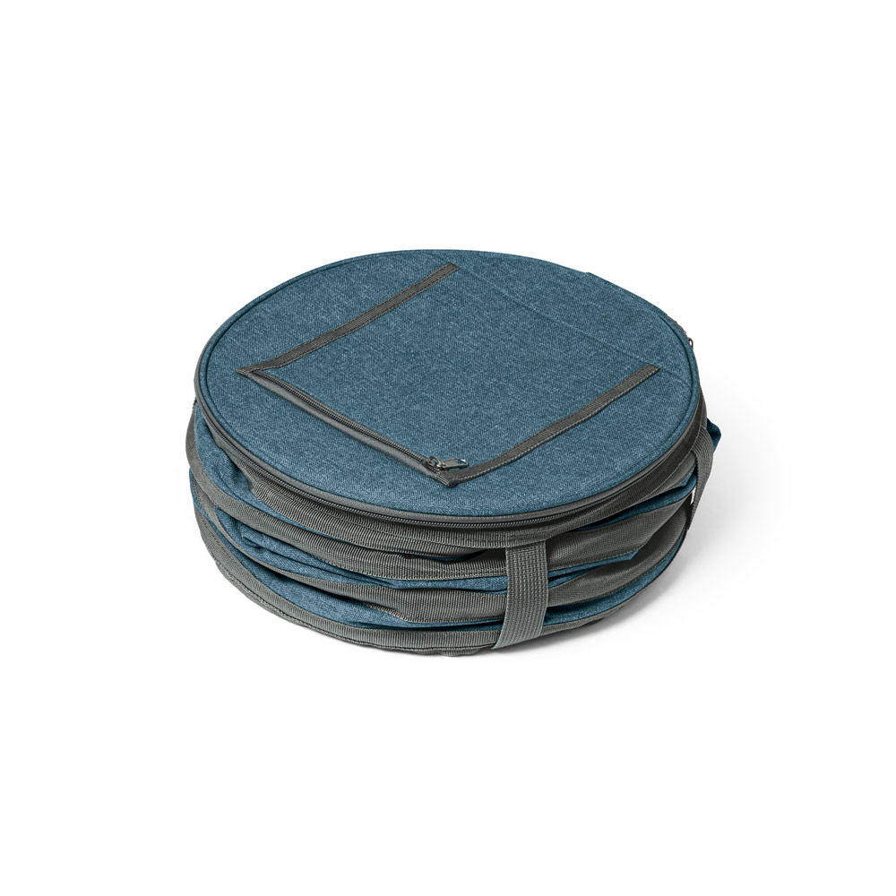 Sacola térmica flexível em 600D com zíper duplo, interior forrado com PEVA e abridor de garrafas. Bolso superior com zíper, alças em webbing, com reforço e capacidade até 15 L. Certificação EU Food Grade. ø300 x 260 mm