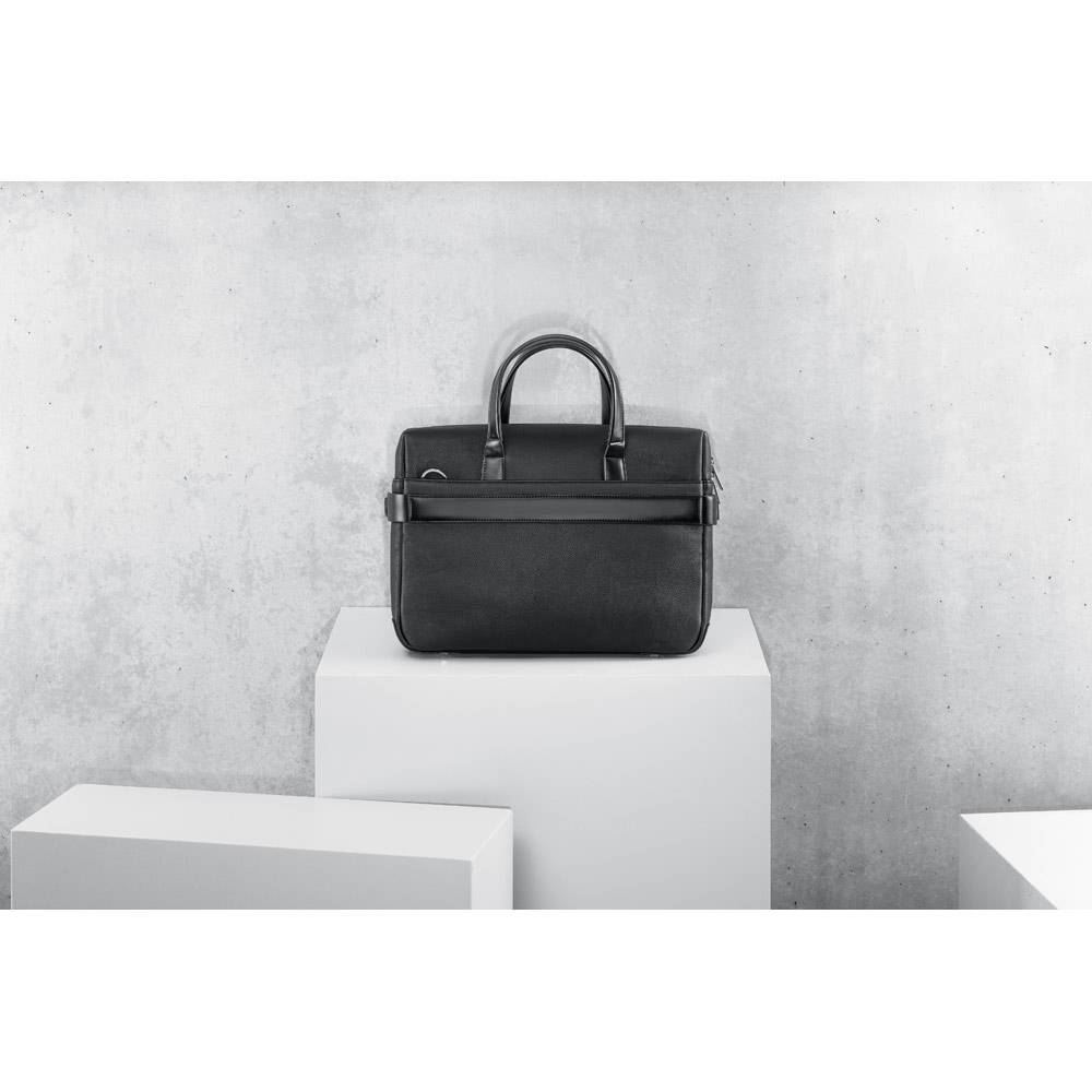 A Empire II é uma pasta clássica e sofisticada, que contém dois bolsos idealizados para proteger o seu notebook até 15’6” e o seu tablet até 10’5”. O seu design, tal como todos os produtos desta linha, foi pensado ao mais ínfimo pormenor e todos os detalhes fazem com que a pasta Empire II seja o objeto ideal para o dia-a-dia, que não passa despercebido. O acabamento da Empire II é em c. sintético texturado de alta qualidade. A versatilidade que se denota nas diferentes formas de transporte, é igualmente percetível no seu encaixe para trolley. Fornecida em sacola de non-woven. EMPIRE SUITCASE II: 380 x 280 x 80 mm | Sacola em non-woven: 500 x 500 x 80 mm