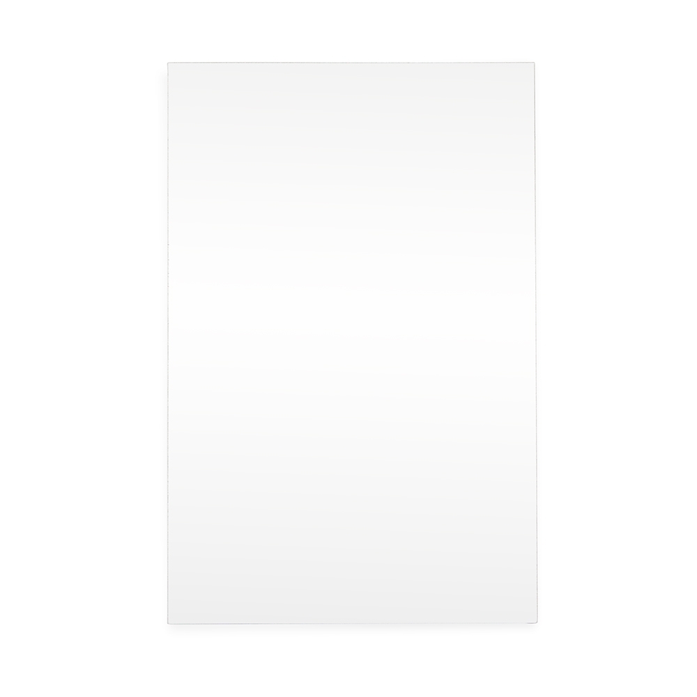 Espelho retangular em acrílico com fundo adesivo para fixação em paredes e outras superfícies lisas.