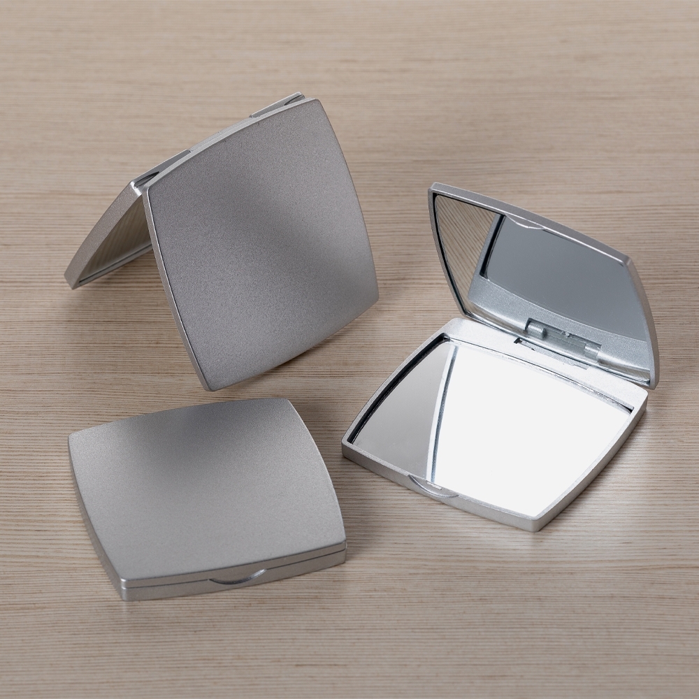 Um espelho duplo funcional e compacto para levar junto para qualquer lugar. Seus dois espelhos sem aumento feitos em vidro, moldura plana em plástico projetada com bordas arredondadas e fechamento prático conferem um design único e elegante para o uso no dia a dia.
