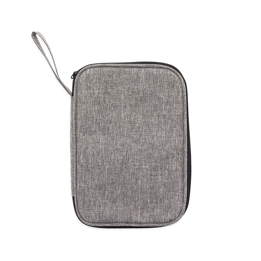 Estojo confeccionado em poliéster resistente à água. Conta com bolso interno em tela de nylon e fechamento em zíper e divisórias em diferentes tamanhos em elástico. Possui alça de mão para transporte.