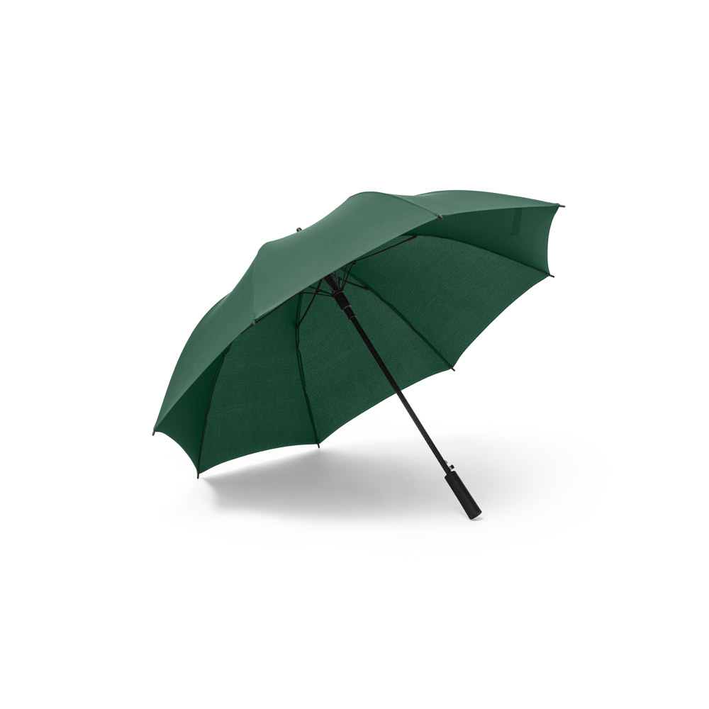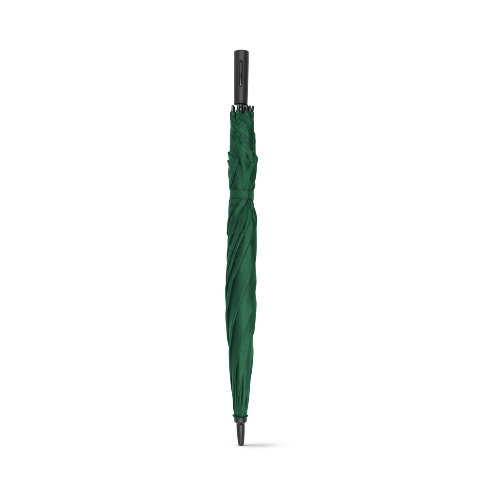 Guarda-chuva em poliéster pongee 190T, com haste e varetas em fibra de vidro e pega em PP. O guarda-chuva tem abertura automática e é à prova de vento. Fornecido em bolsa. ø1170 x 880 mm | Bolsa: 85 x 725 mm