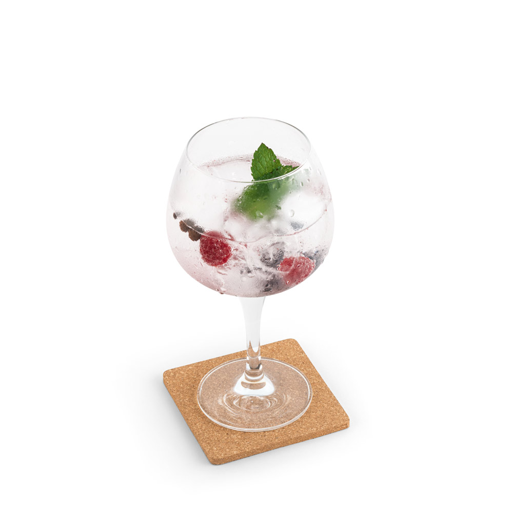 Porta copos em cortiça em formato quadrado com cantos redondos. Certificação EU Food Grade. A cor e o resultado da impressão nos materiais naturais podem variar entre produtos. 100 x 100 x 5 mm