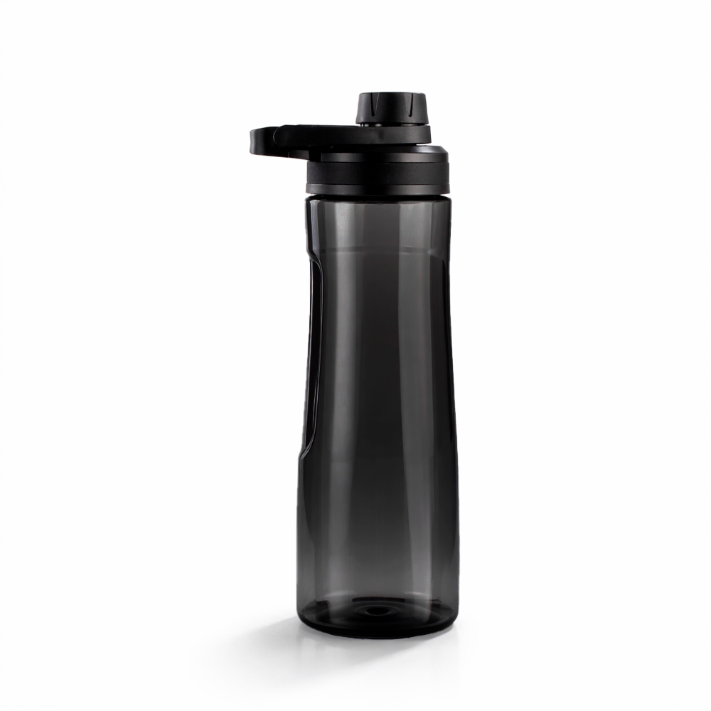 Garrafa plástica em policarbonato (PC) livre de BPA com capacidade máxima de 750ml. Possui tampa rosqueável em polipropileno (PP) com protetor para o bocal, anel emborrachado antiderrapante e alça fixa para transporte. Acompanha peneira plástica para encaixe interno.