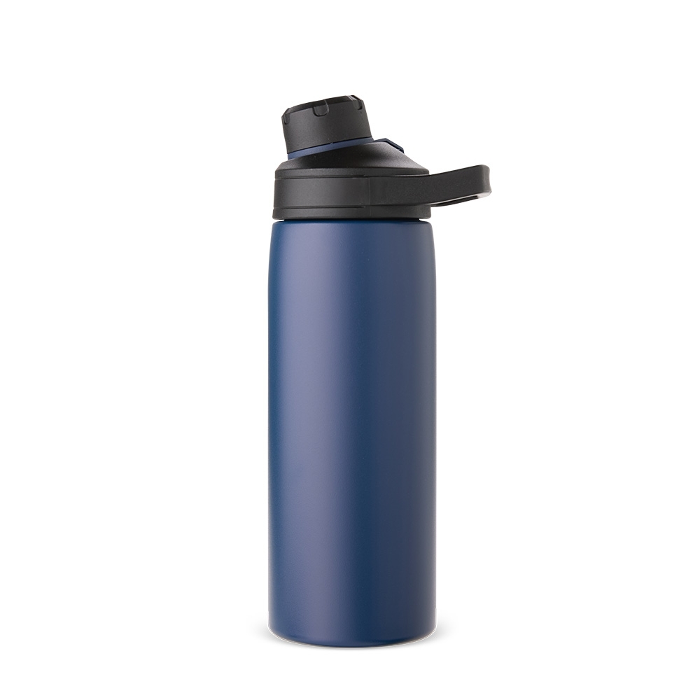 Garrafa térmica feita em inox com estrutura em parede dupla, vedação a vácuo e capacidade máxima de 600ml, ideal para manter a temperatura de líquidos por mais tempo. Possui tampa rosqueável em plástico resistente com protetor de bocal e alça fixa, em formato retangular, para transporte.