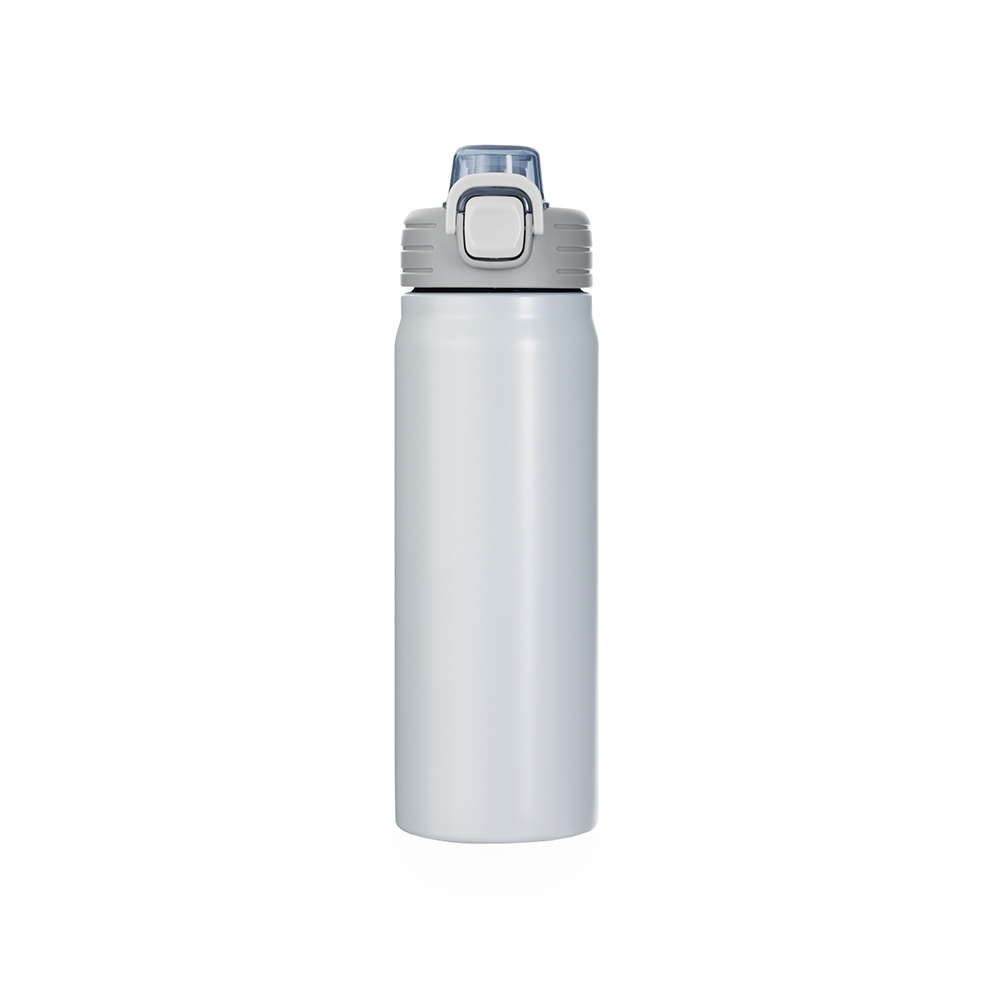 Garrafa térmica com capacidade para até 680ml. Feita em inox 304, possui estrutura de parede dupla e vedação a vácuo, permitindo a conservação da temperatura de líquidos por mais tempo. Conta com tampa rosqueável com trava de segurança, botão de acionamento para abrir a tampa protetora do bocal e alça para transporte. Acompanha um canudo plástico para encaixe no interior da garrafa.
