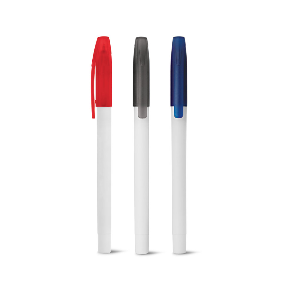 Esferográfica em PP com acabamento matt no corpo e frost na ponteira e tampa. Até 1.5 km de escrita. ø10 x 142 mm