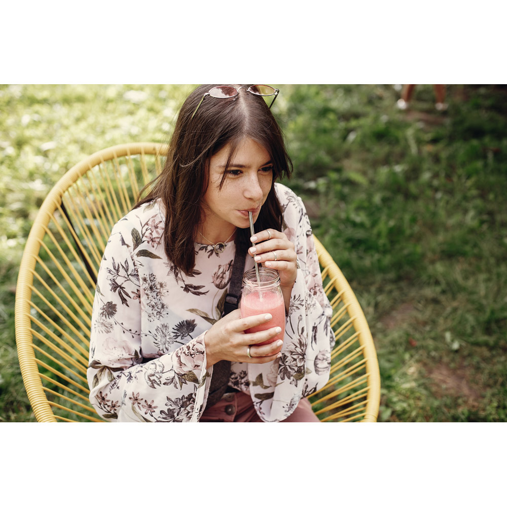 Canudo em aço inox. Embalagem vendida opcionalmente: 92918 (bolsa em non-woven) ou 92917 (bolsa em linho). Certificação EU Food Grade. Canudo: Ø6 x 215 mm | Escova de limpeza: 240 mm
