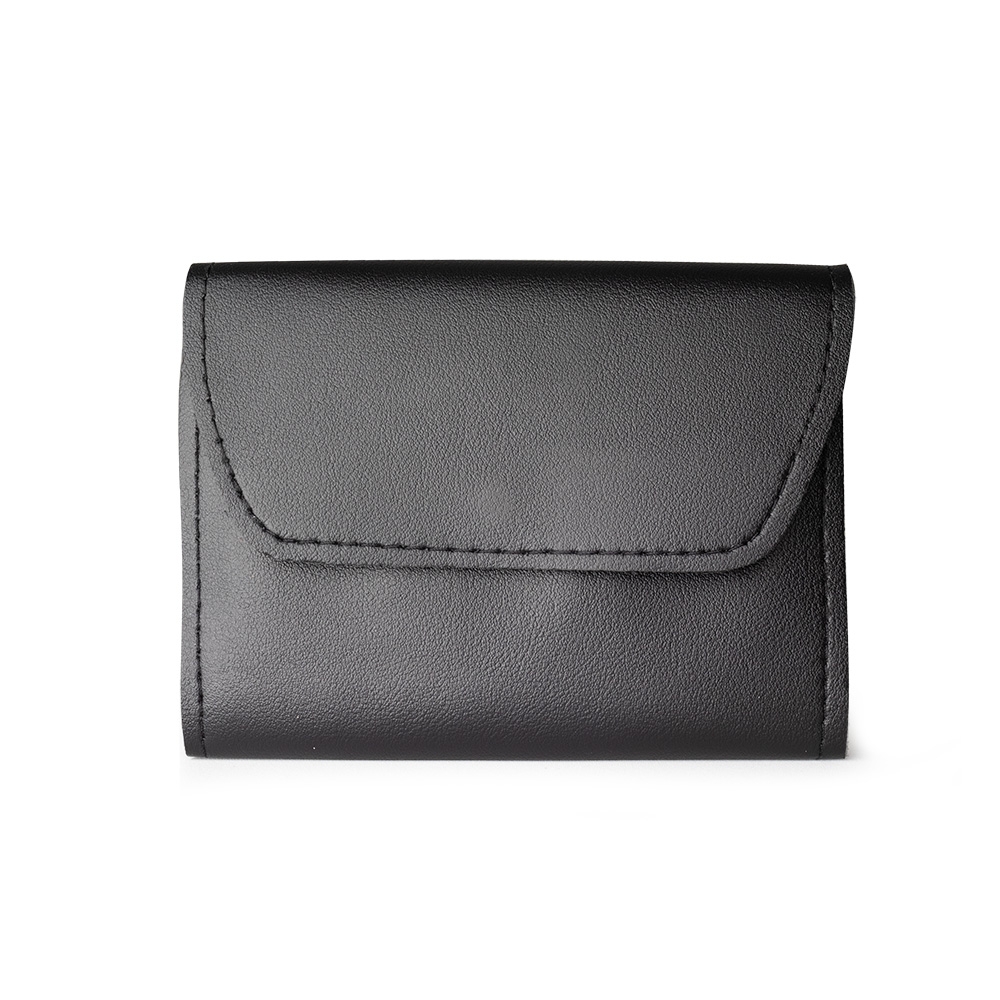 Kit manicure 16 peças em estojo de couro sintético estilo envelope, contém: tesoura, alicate de cutícula, pinça, 3 cortadores de unha, lixa, 2 bisturis, raspador, empurrador de cutícula, removedor de cutícula, espátula dupla para limpeza das unhas, limpador de ouvido, palito de unha e espátula para ouvido.