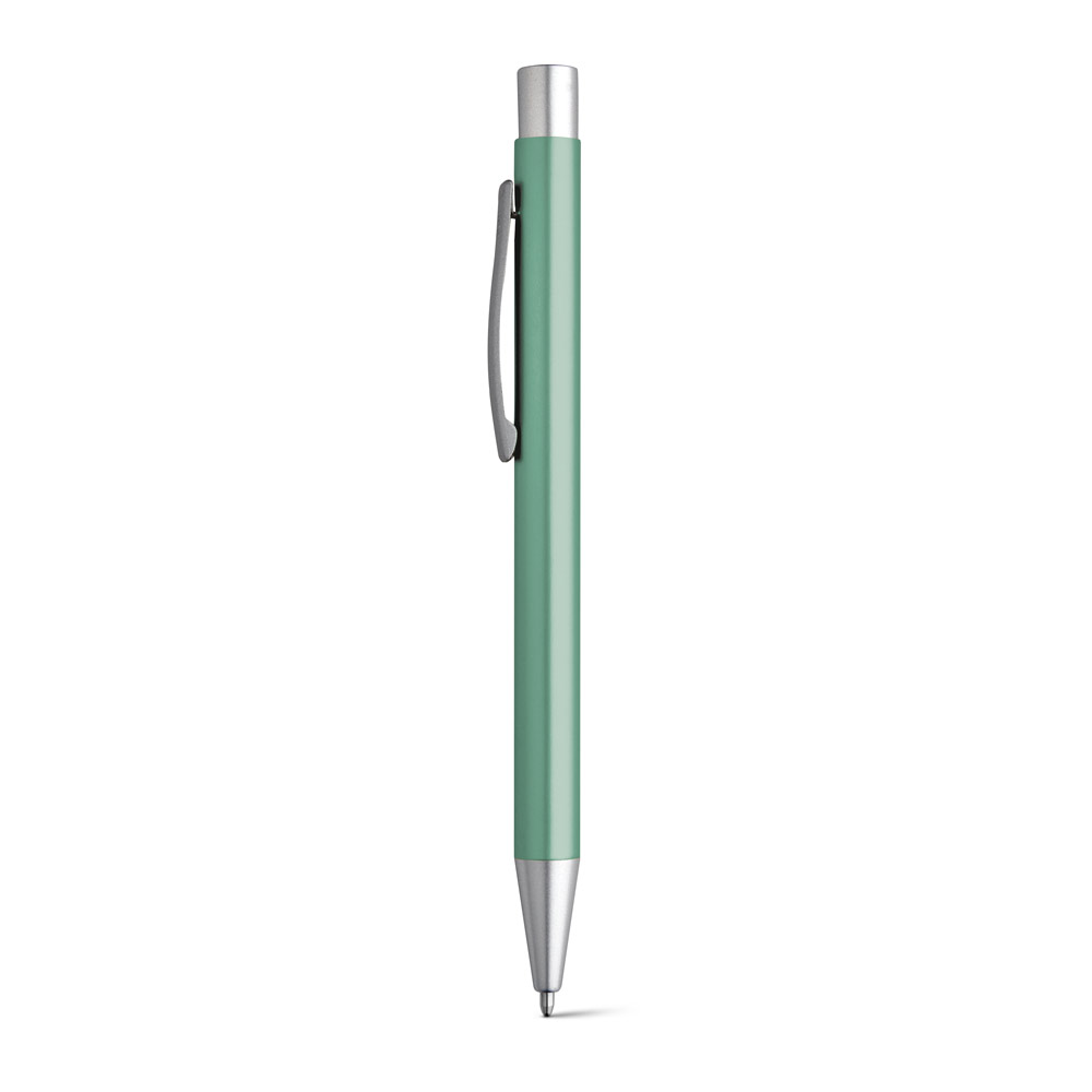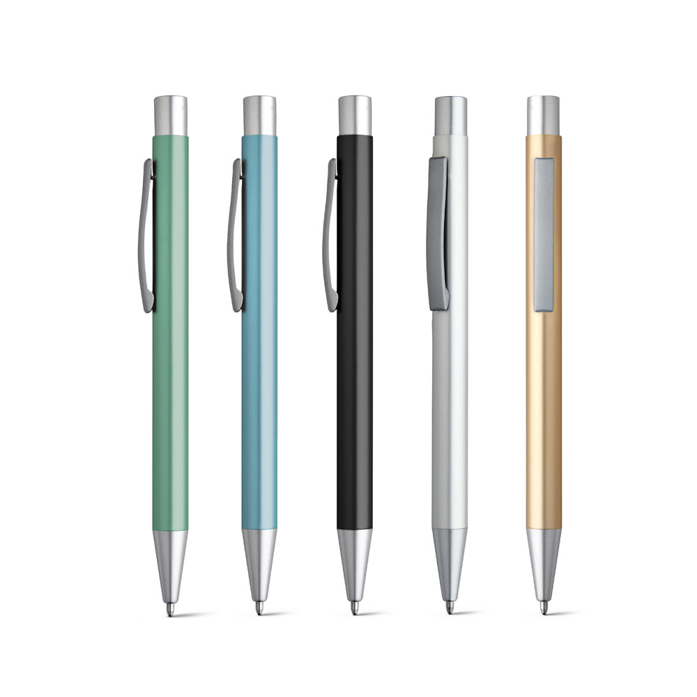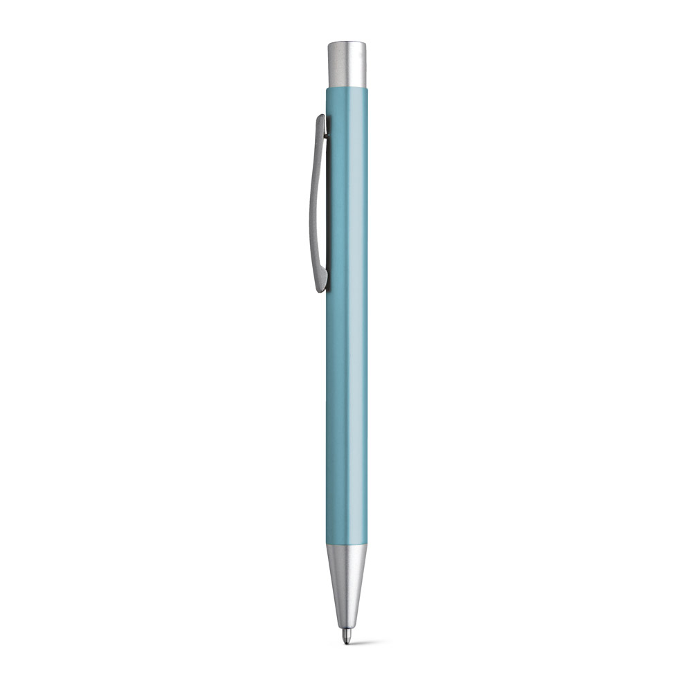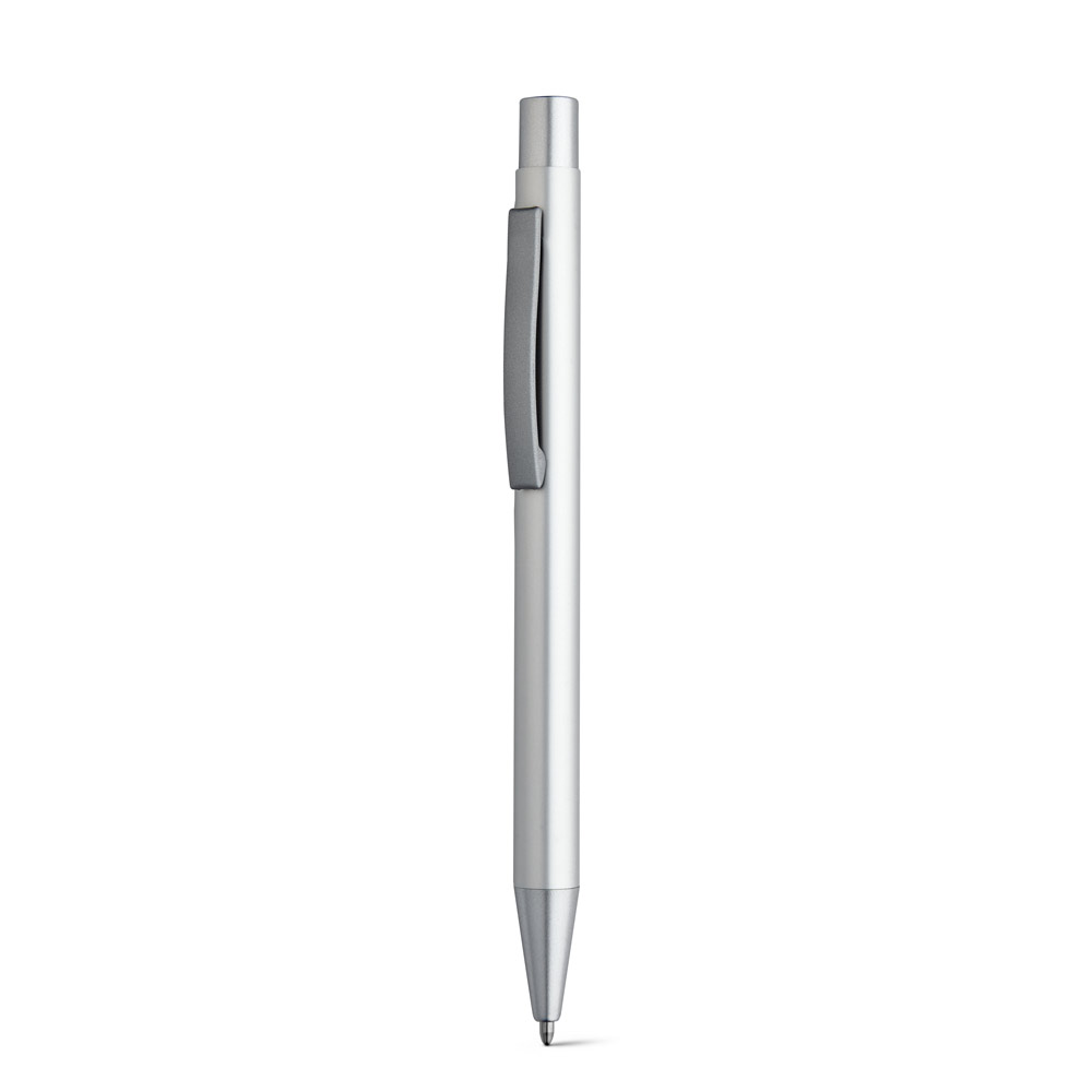 Esferográfica em alumínio com acabamento mate e clipe de metal. Escrita em preto até 1.5 km. ø10 x 137 mm