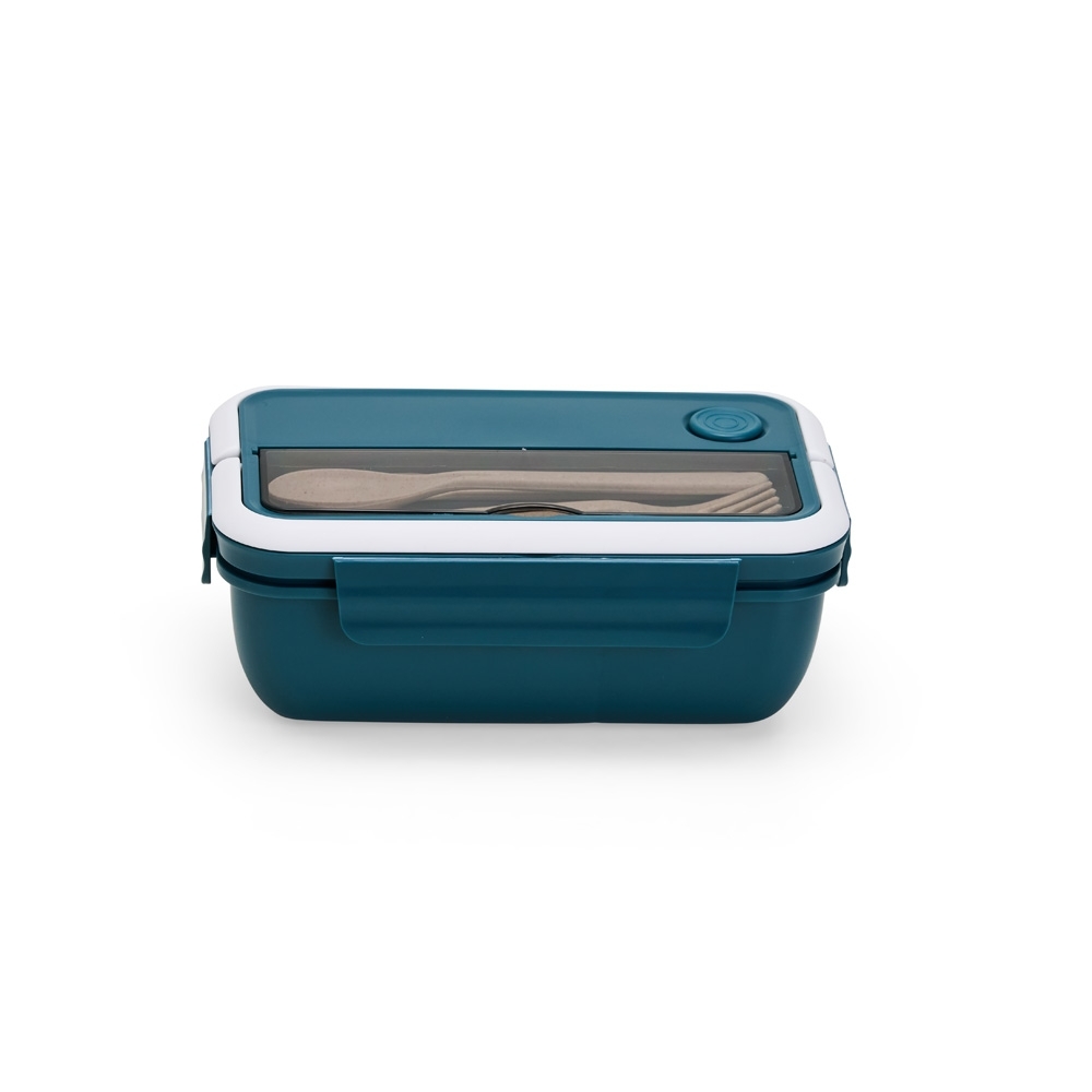 Marmita hermética de 1 litro com divisórias e 3 talheres. Feita em PP atóxico e livre de BPA, é completamente segura para armazenar alimentos. A tampa possui travas de segurança, supervedação, silicone com respiro e alças que facilitam o transporte. Os talheres podem ser guardados em um compartimento separado com tampa transparente, garantindo praticidade durante as refeições. Além disso, as duas divisórias internas mantêm os alimentos separados, preservando o sabor de cada um. Uma escolha inteligente para uma vida prática e saudável.