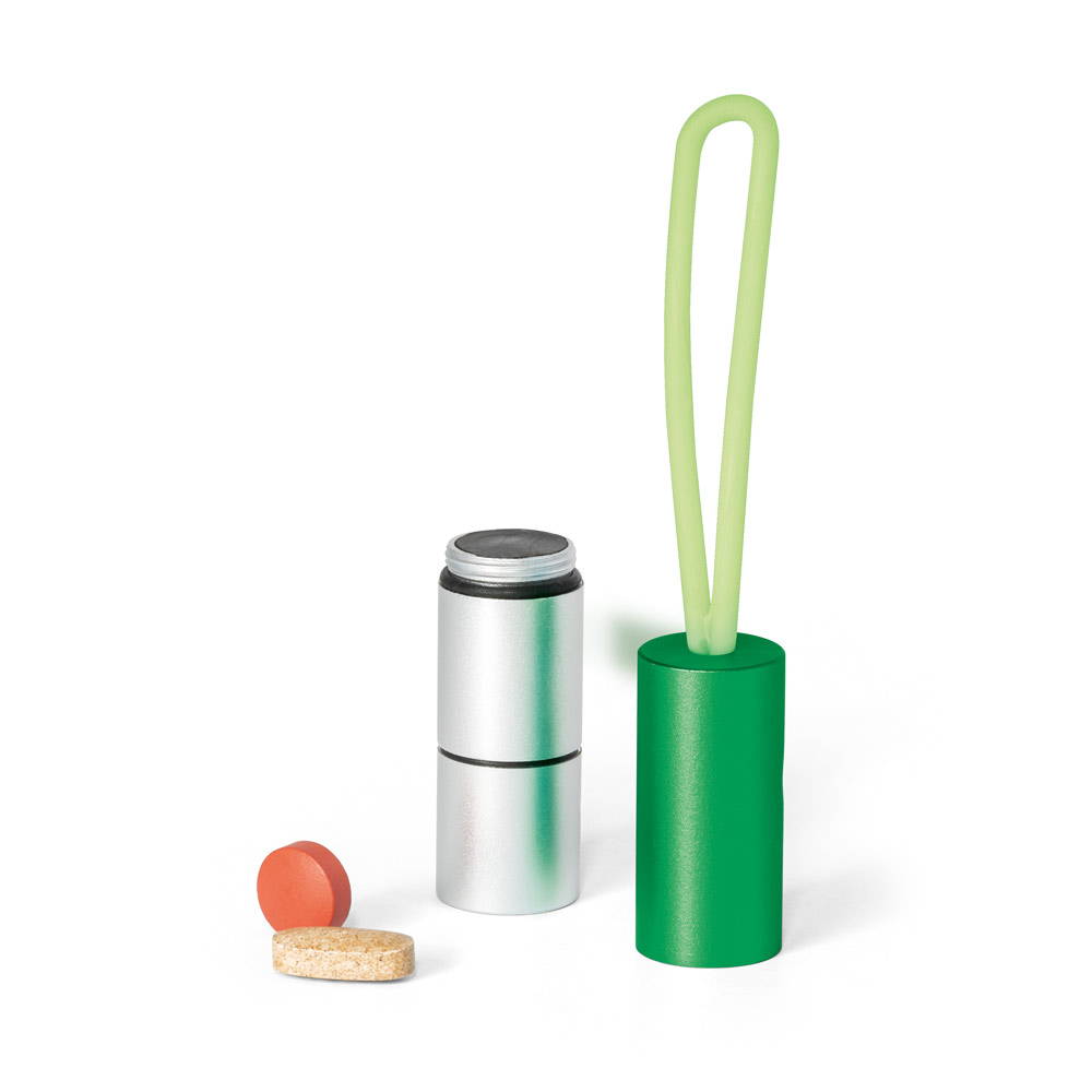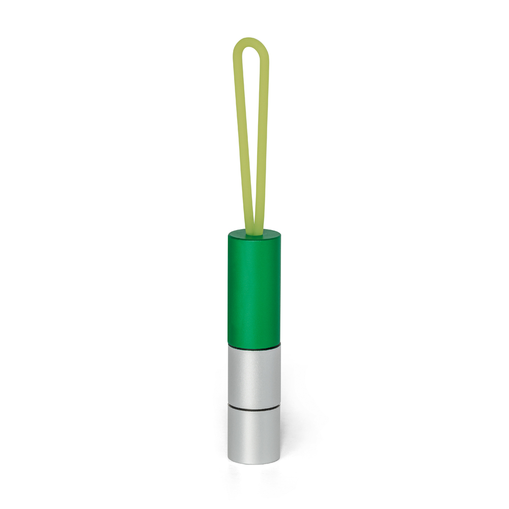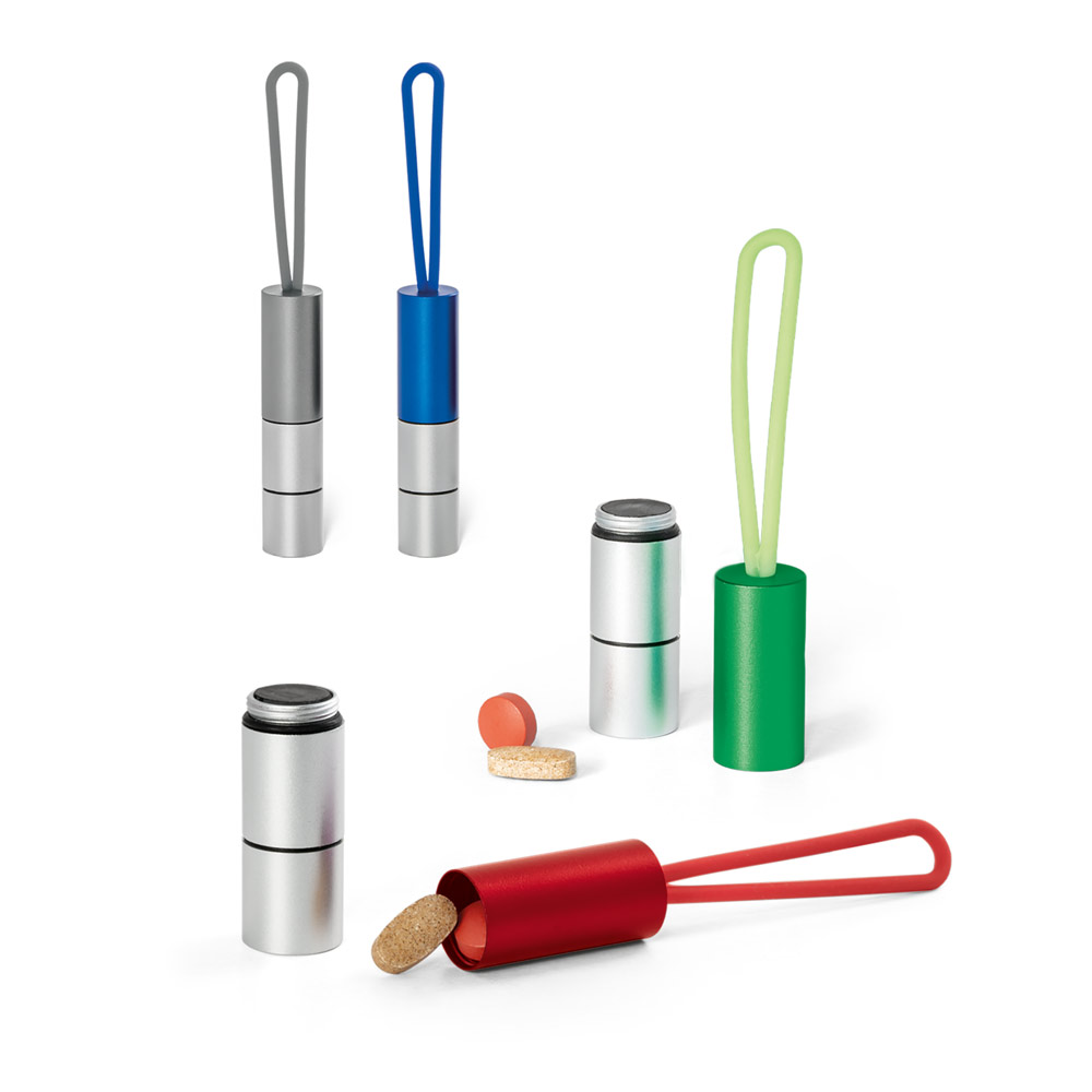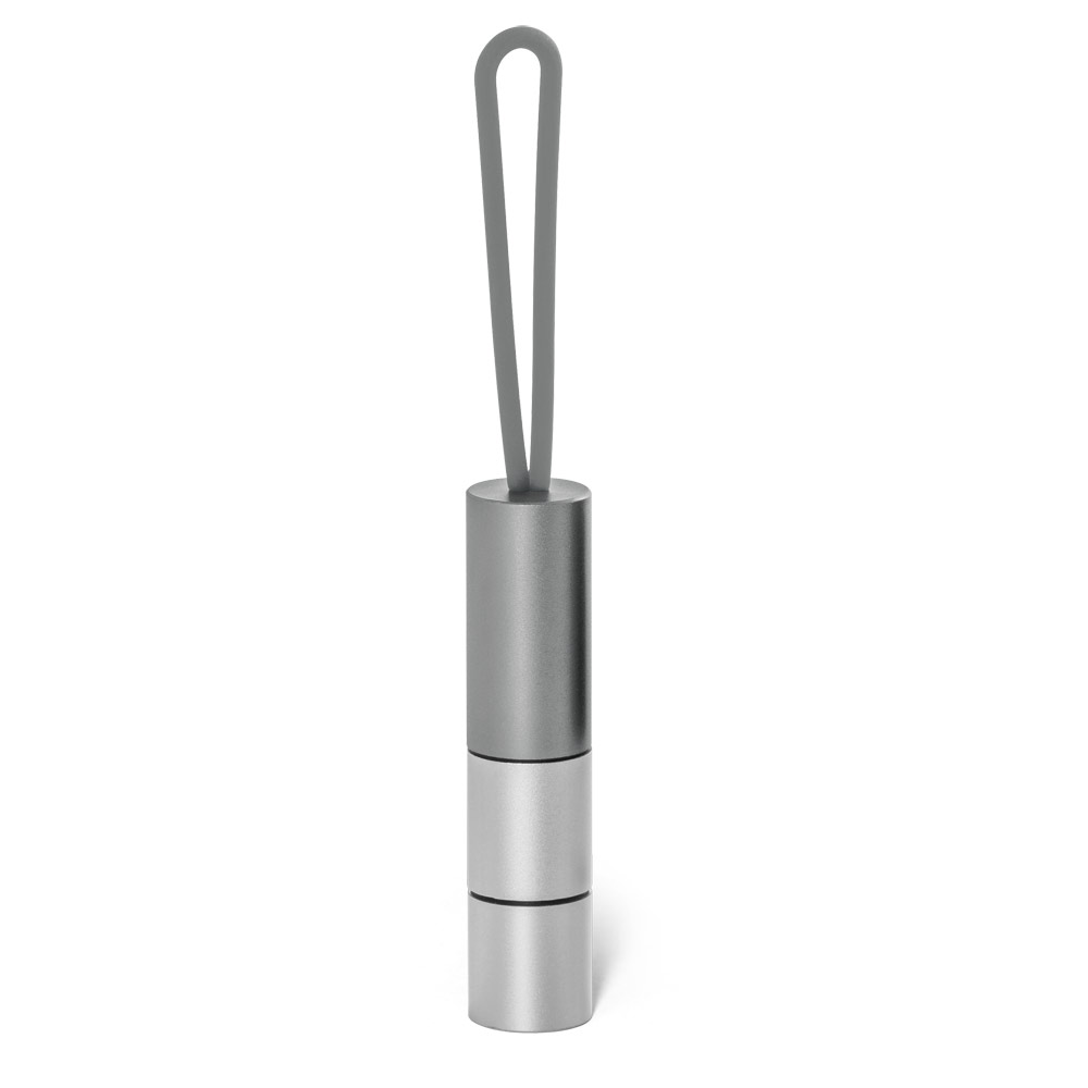 Lanterna em alumínio com 1 LED, porta comprimidos e fita em silicone. Incluso 3 pilhas LR44. ø17 x 73 mm | Pega de silicone: 60 mm