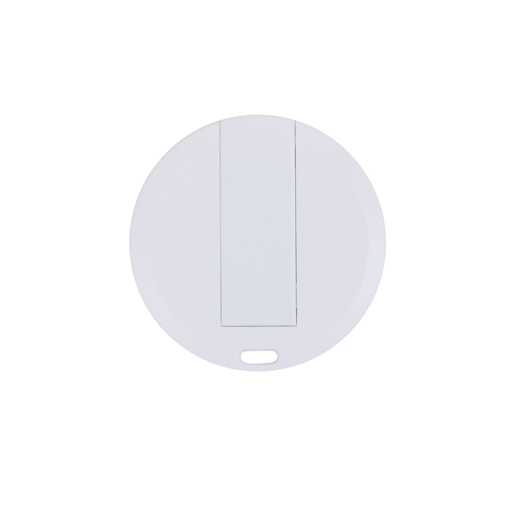Carcaça redonda para pen card, basta empurrar o suporte para encaixar a memória COB. Parte inferior com um ?furo? para colocar algum cordão.