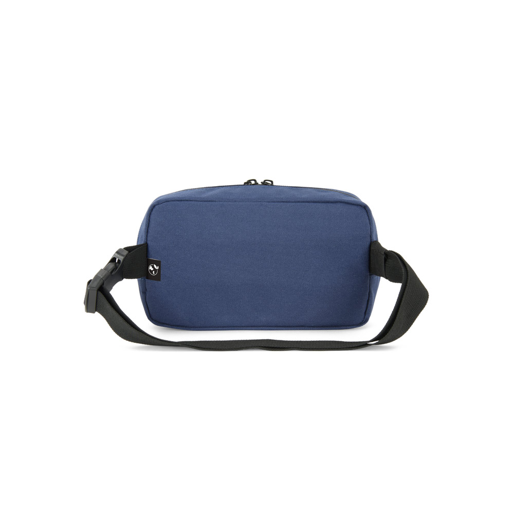 Pochete em poliéster reciclado 600D e forro em poliéster reciclado 210D. Possui um compartimento principal e um bolso frontal. 220 x 130 x 70 mm