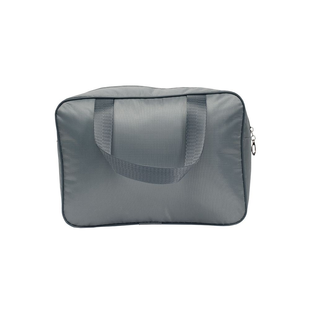 Nécessaire impermeável confeccionada em Poliéster e revestimento interno em PVC. Possui fechamento em zíper e duas alças em nylon.