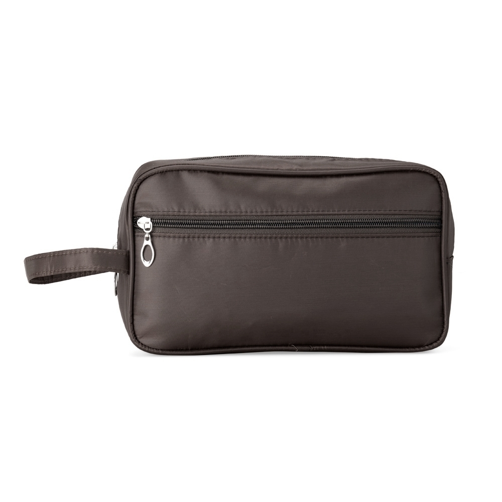 Um modelo de nécessaire versátil e espaçoso feita em poliéster resistente à água. Conta com amplo compartimento interno e bolso frontal, ambos com fechamento em zíper. Além disso, possui alça de mão para facilitar seu transporte.