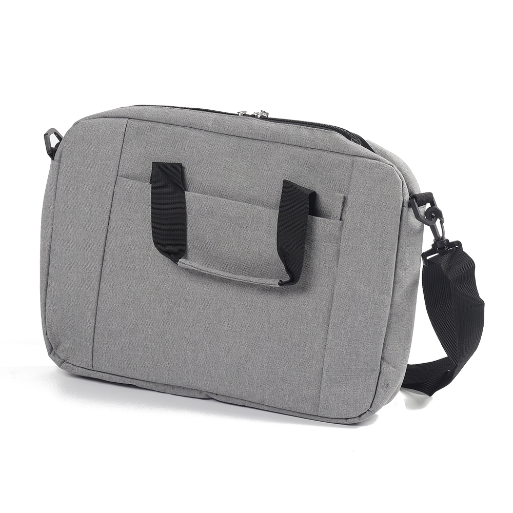 Pasta para notebook 14 polegadas em poliéster, possui dois bolsos com zíper, três compartimentos internos sendo um deles com alça protetora para o notebook.