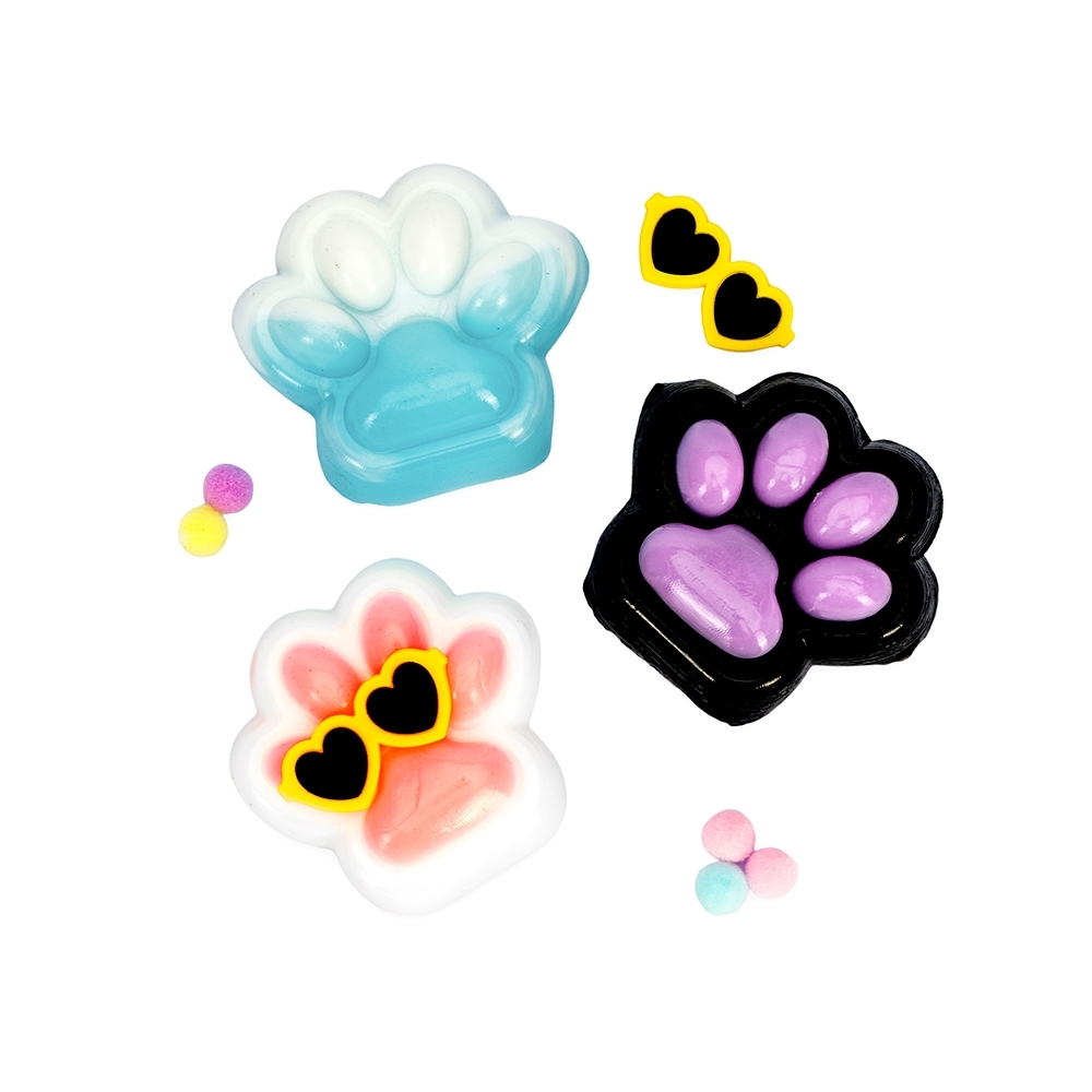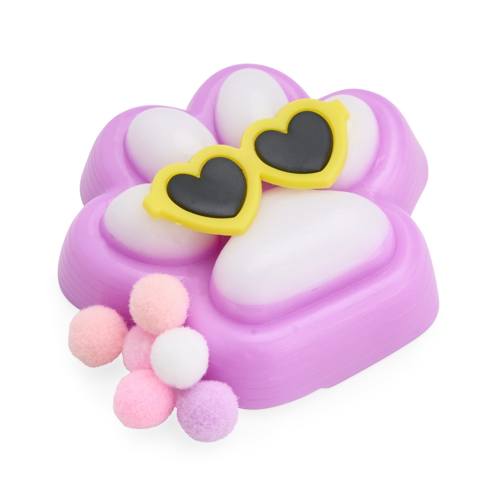 Brinquedo apertável antiestresse em formato de pata estilizada. Produzido em borracha termoplástica de textura lisa e macia, que adere facilmente a superfícies planas. Acompanha um pequeno óculos em plástico e bolinhas de pelúcia para decoração.