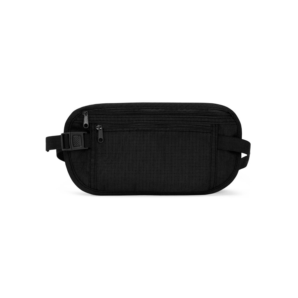 ochete tipo doleira confeccionada em nylon. Possui design compacto antifurto, dois bolsos de tamanhos diferentes e cinto ajustável em elástico com fivela de encaixe.