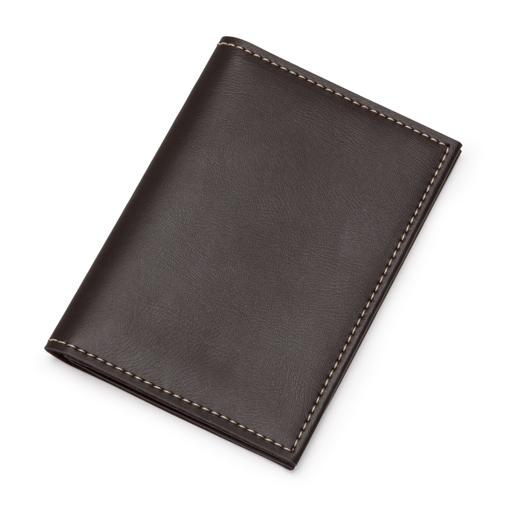 Porta-documento em couro sintético, frente e verso liso. Parte interna com dois bolsos de visor plástico.