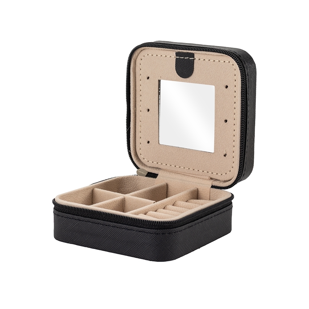 O item perfeito para não esquecer onde estão seus acessórios na hora de sair de casa. Feito em couro sintético, possui revestimento aveludado. Na sua parte interna, possui divisórias para acomodar cada item, como anéis, brincos, pulseiras e colares, seu espelho, além de possibilitar a oportunidade de dar aquela olhada no visual, também é uma divisória entre um compartimento e outro.