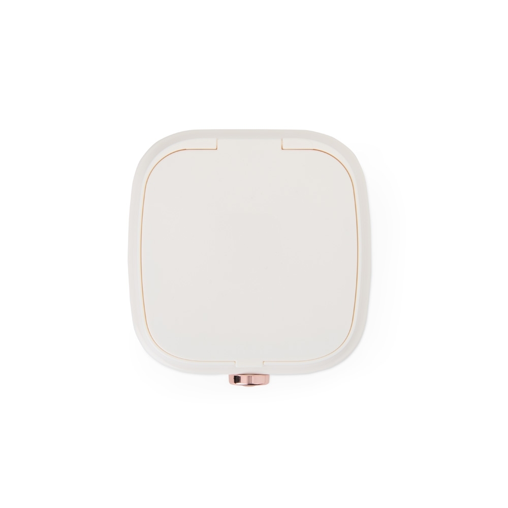 Suas joias merecem um lugar especial, e com este porta-joias, manter os acessórios organizados e protegidos nunca foi tão fácil e elegante. Produzido em plástico e de design compacto, sua abertura principal é cheia de glamour, destacada por um lindo botão na cor rose gold. Sua parte interna conta com três compartimentos: um removível e emborrachado, ideal para anéis, brincos e colares, e outro com divisória, perfeito para itens maiores como batons, pulseiras ou o que mais desejar. Além disso, possui um compartimento com espelho embutido, tornando o momento de se arrumar ainda mais especial na hora de escolher os acessórios.