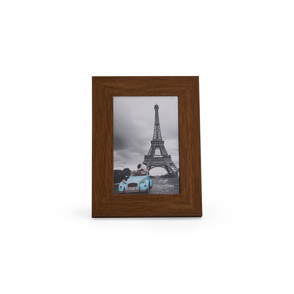 Porta-retrato para fotos 10 x 15, ideal para mesas e superfícies planas. Possui moldura em PVC, visor em acetato, fundo em MDF e travas metálicas.