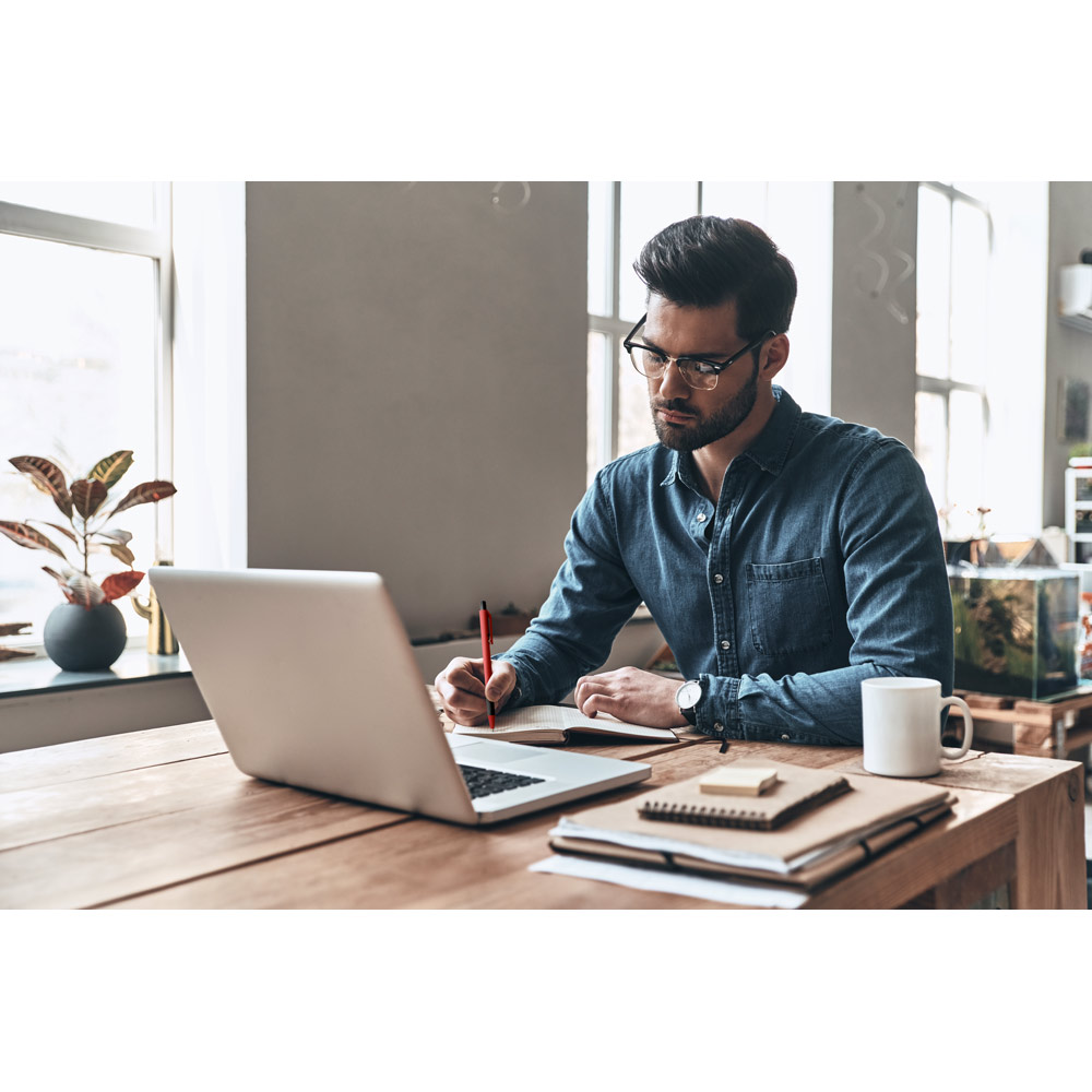 Esferográfica em ABS com grip, acabamento brilhante e corpo triangular. Escrita em azul até 1.5 km. Produto certificado de acordo com a portaria Inmetro nº423 de 8/out/2021. ø9 x 141 mm