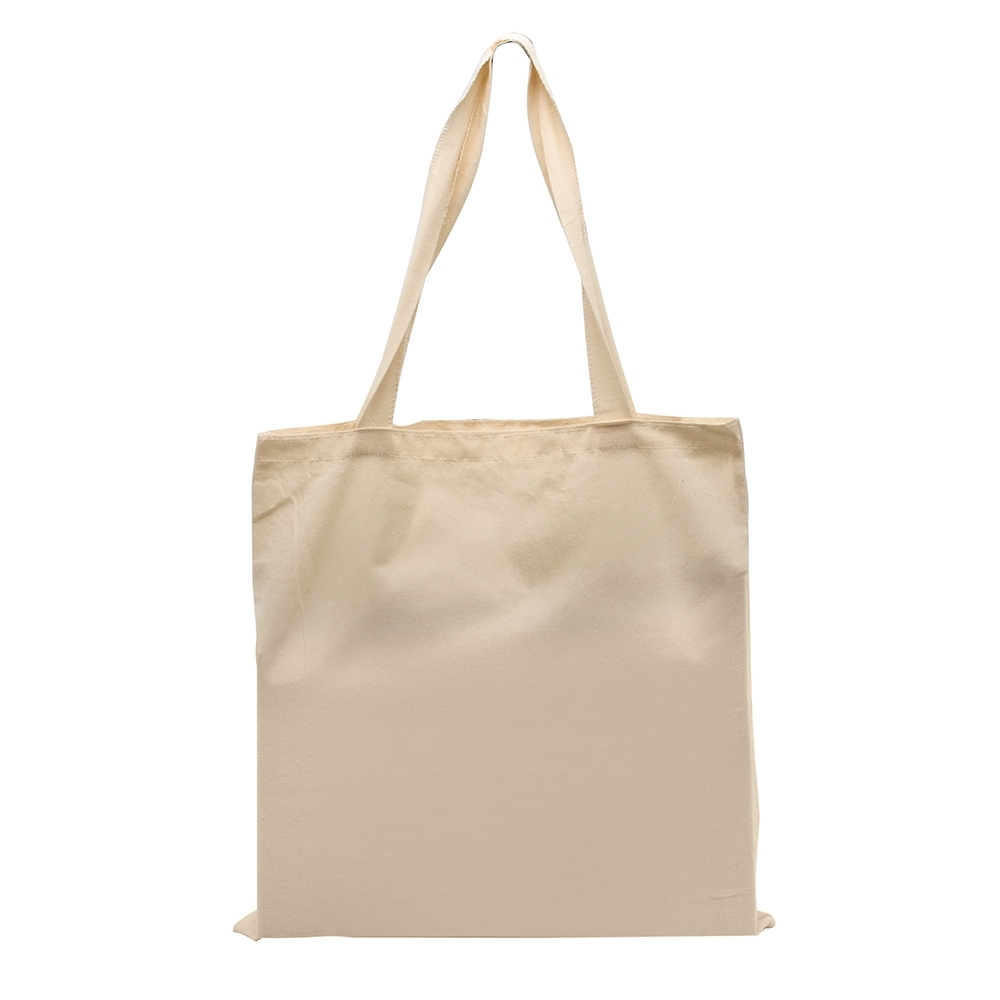 Sacola de algodão 210g/m² com 16 fios e alças costuradas na parte interna.