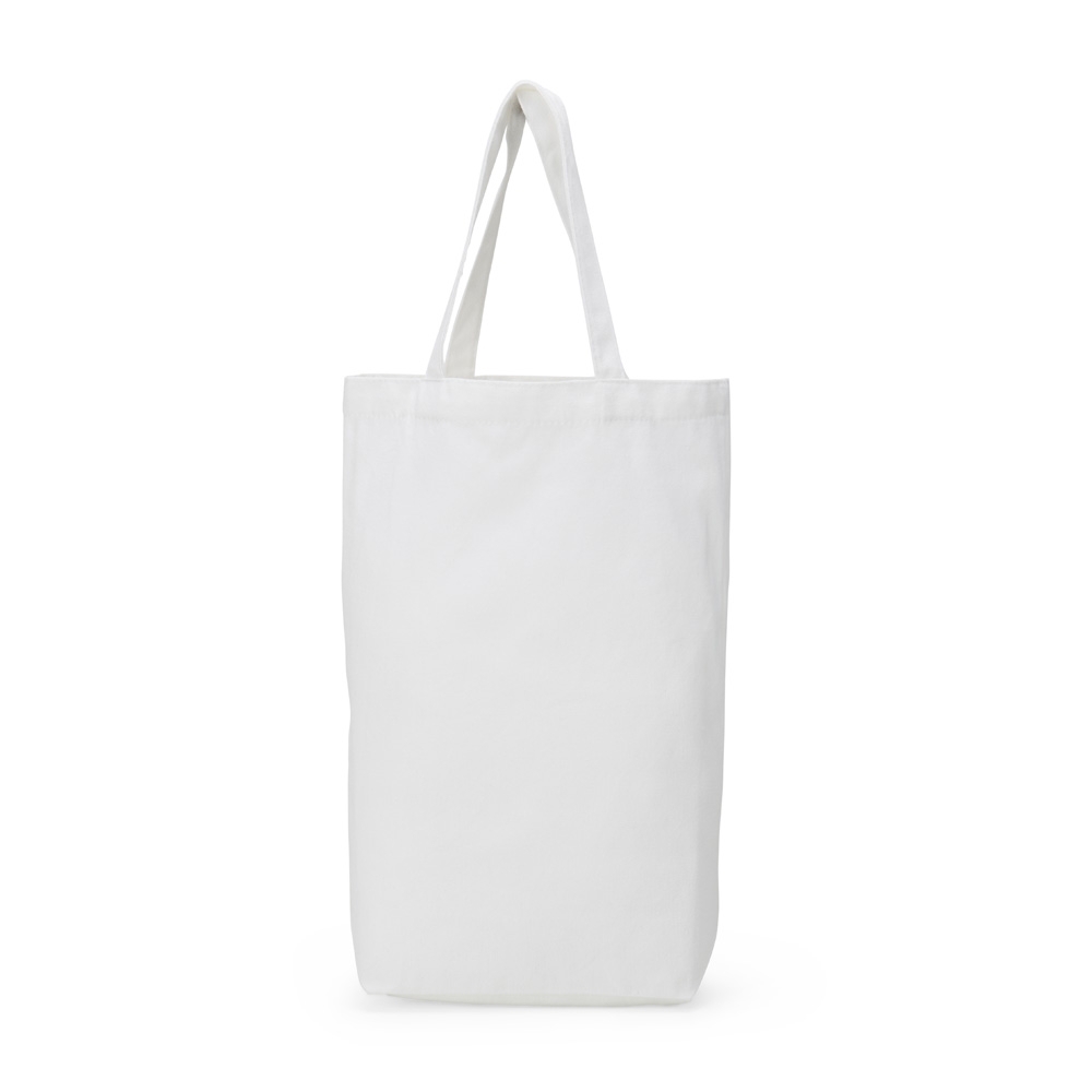 Sacola de algodão 280g/m² com alças costuradas na parte interna.
