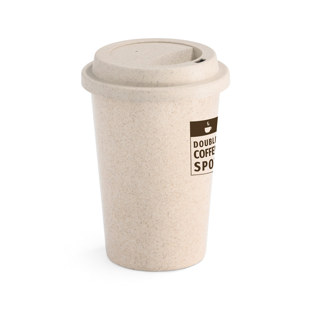 Copo de viagem em fibra de bambu (60%) e PP (40%) com tampa e capacidade até 450 mL. Certificação EU Food Grade. ø93 x 134 mm